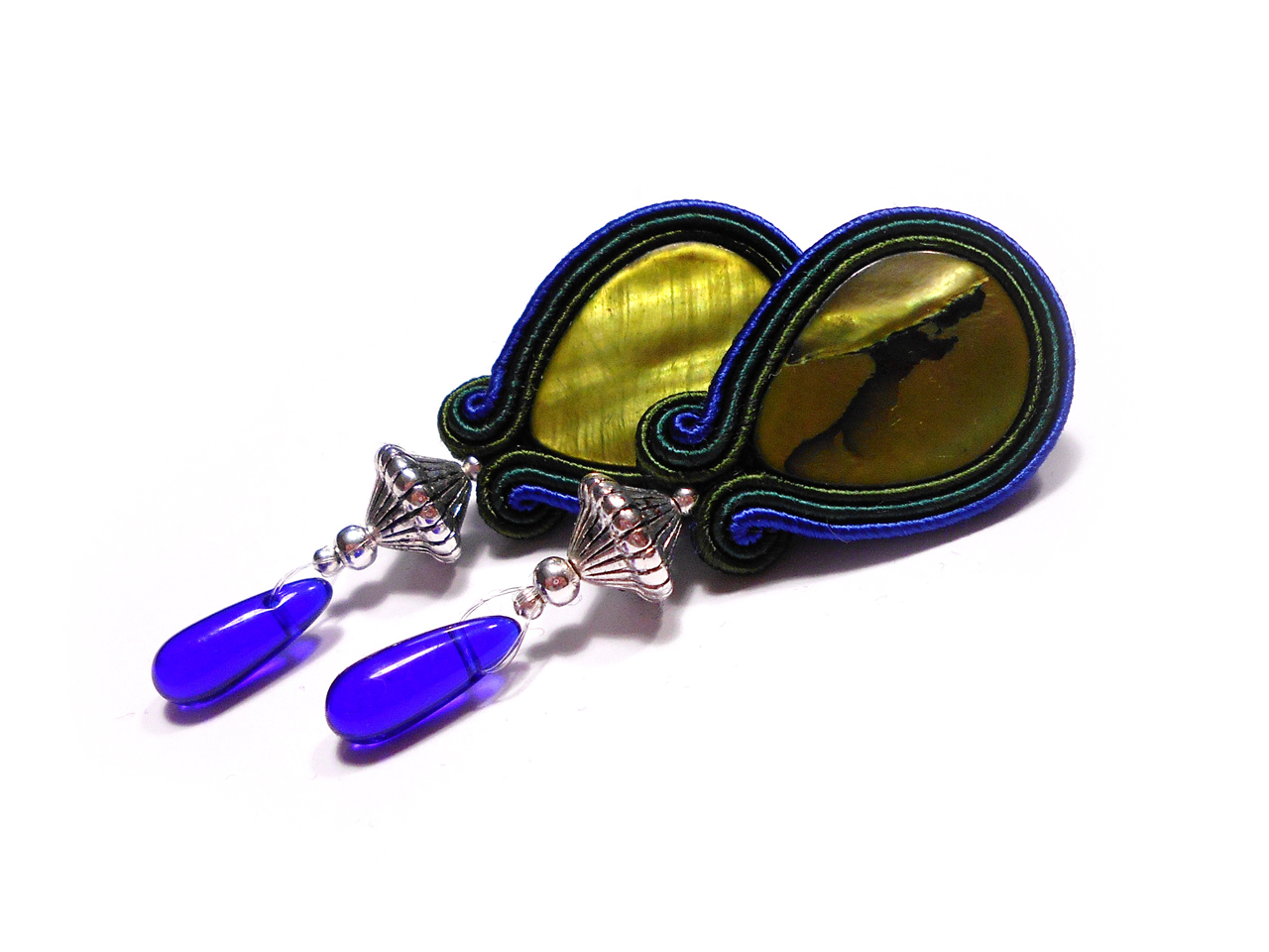 KOLCZYKI SUTASZ granatowo zielone 100% hand made