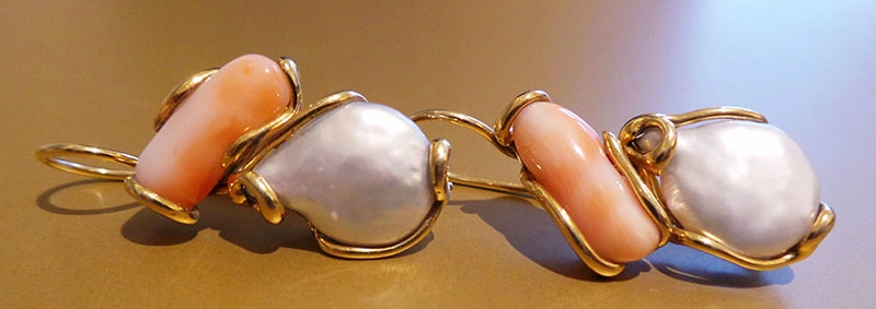 KOLCZYKI Z KORALEMI I PERLAMI BAROKO
