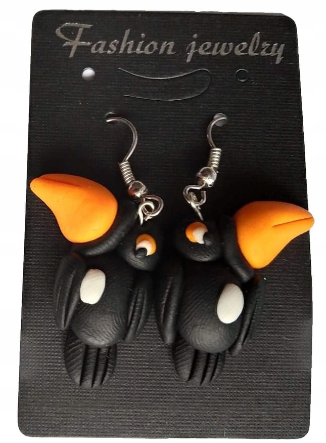 KOLCZYKI Z MODELINY FIMO PTAK TUKAN AFRYKA CZARNY