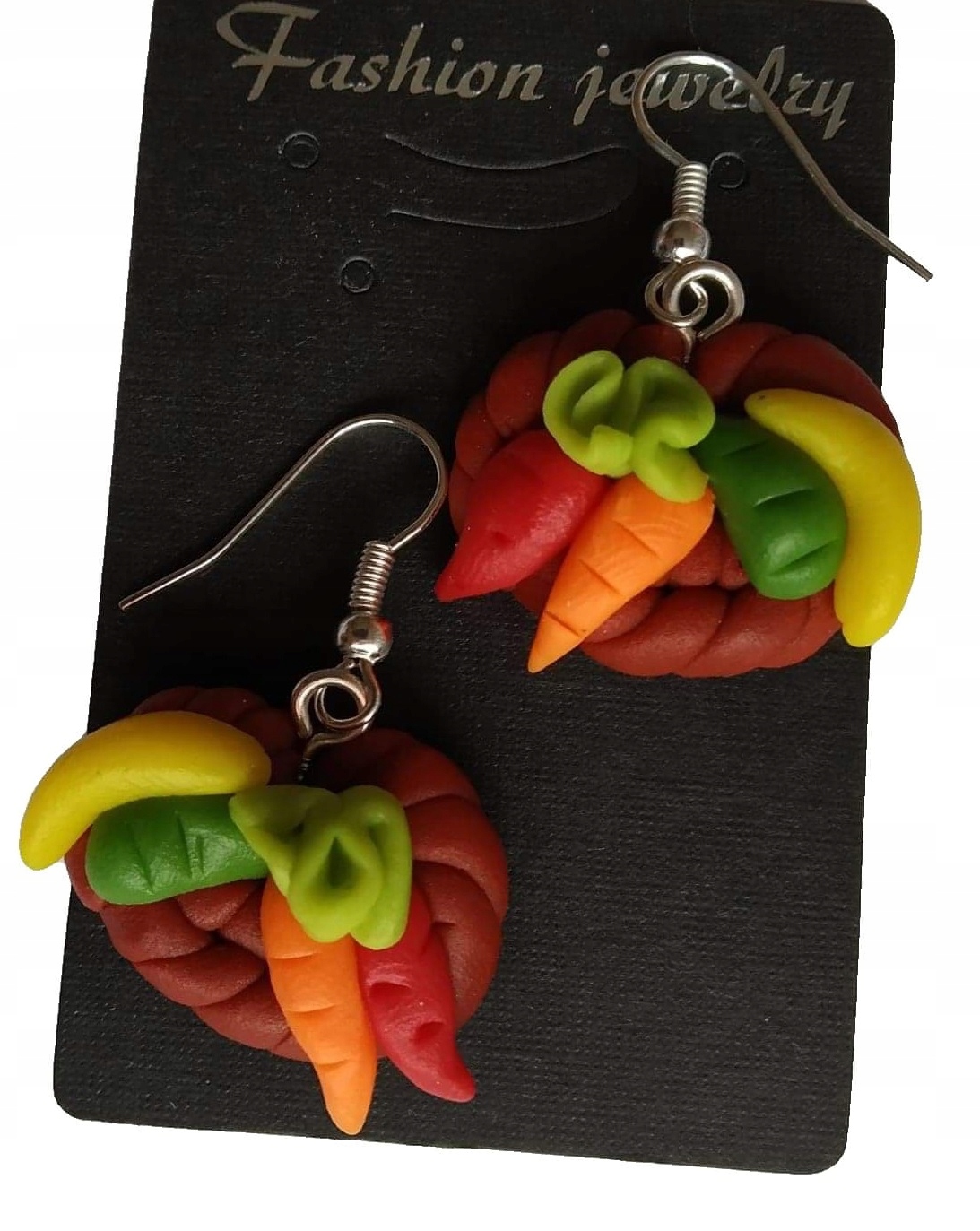 KOLCZYKI Z MODELINY FIMO WARZYWA DESKA WARZYW