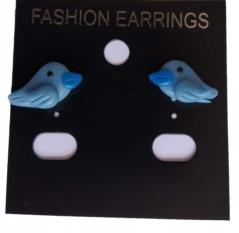 KOLCZYKI Z MODELINY PTAKI WRÓBELKI SZTYFTY PAPUGI