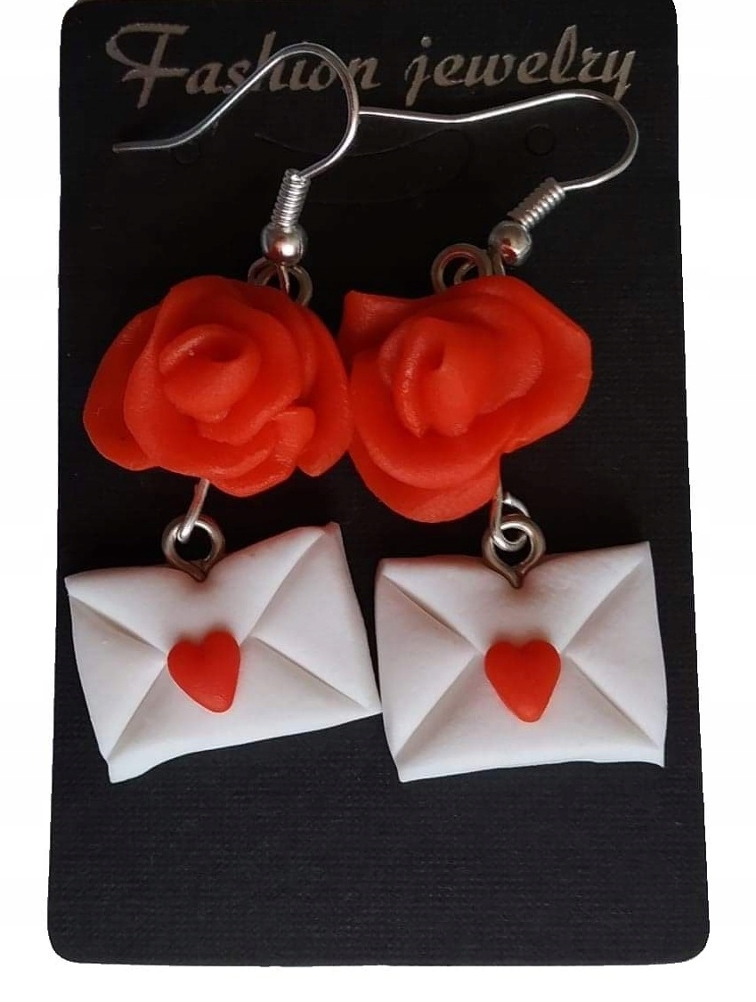 KOLCZYKI Z MODELINY RÓŻA LIST MIŁOSNY LOVE SERCE