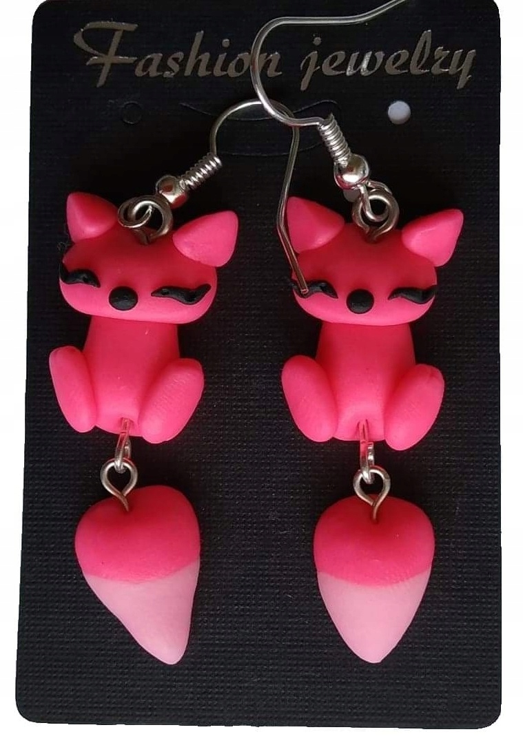 KOLCZYKI Z MODELINY RÓŻOWE LISY LISKI PINK FOX