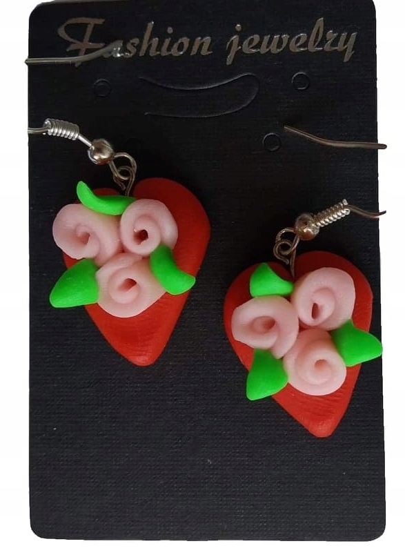 KOLCZYKI Z MODELINY SERCE Z RÓŻĄ SERDUSZKA HEART