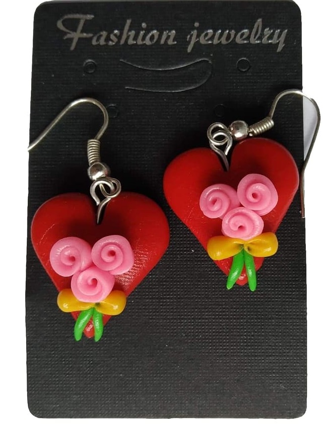 KOLCZYKI Z MODELINY SERCE Z ROŻAMI WALENTYNKI