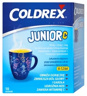 - Вітамін С - Колдрекс Юніор С забезпечує організм вітаміном С, рівень якого може знизитися на початку