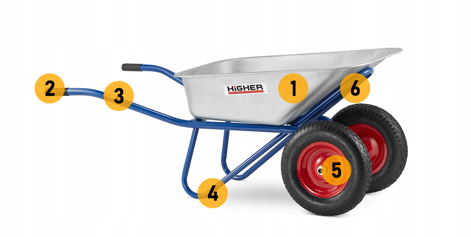 Обираючи двоколісну тачку (люльку) HIGHER, ви обираєте товар з найкращим співвідношенням високої якості та привабливої ціни. Чому така ціна? Тачки є одним з флагманських продуктів, які виробляє наша компанія. Щоб гарантувати збереження нашої лідируючої позиції, ми докладаємо всіх зусиль, щоб перевести договірні закупівельні ціни виробничих матеріалів або ціни доставки на найкращу ціну продукту для вас. Ми займаємося цим багато років. Запрошуємо вас приєднатися до групи задоволених клієнтів. Пам’ятайте, що як виробник ми маємо доступ до кожної деталі тачки, тому ми також можемо допомагати протягом усього післяпродажного періоду.