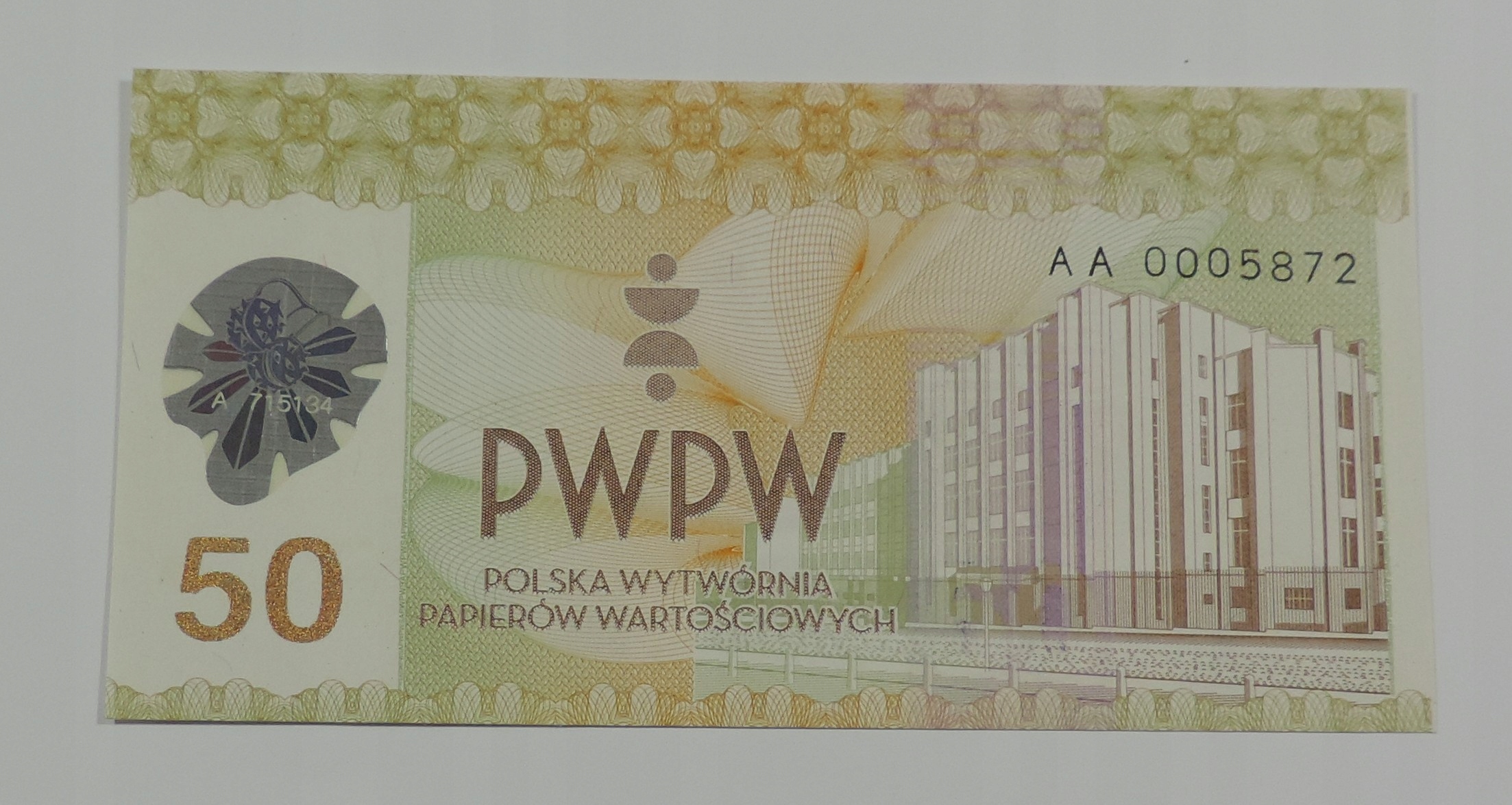 КОЛЕКЦІЙНА БАНКНОТА - ТЕСТ - ПОЛЬЩА - PWPW - 50 БУД. - UNC -OE9434