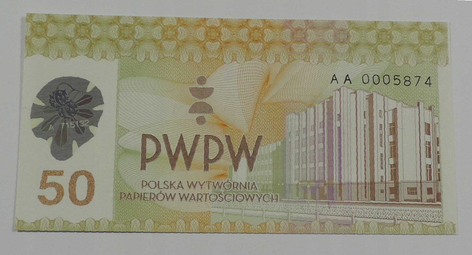 КОЛЕКЦІЙНА БАНКНОТА - ТЕСТ - ПОЛЬЩА - PWPW - 50 БУД. - UNC -OE9436