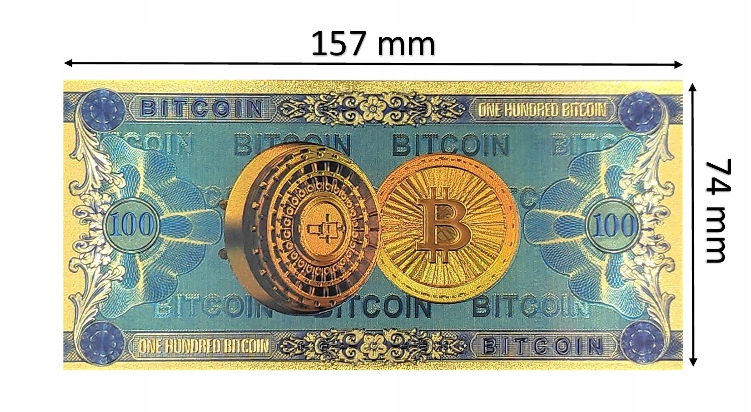 Шикарна банкнота номіналом 100 БІТКОЙН — цікава й оригінальна пропозиція для шанувальників криптовалюти. Незважаючи на те, що БІТКОЙН є цифровою валютою, зробити комусь подарунок або мати його фізичний замінник, безперечно, буде чимось особливим.
