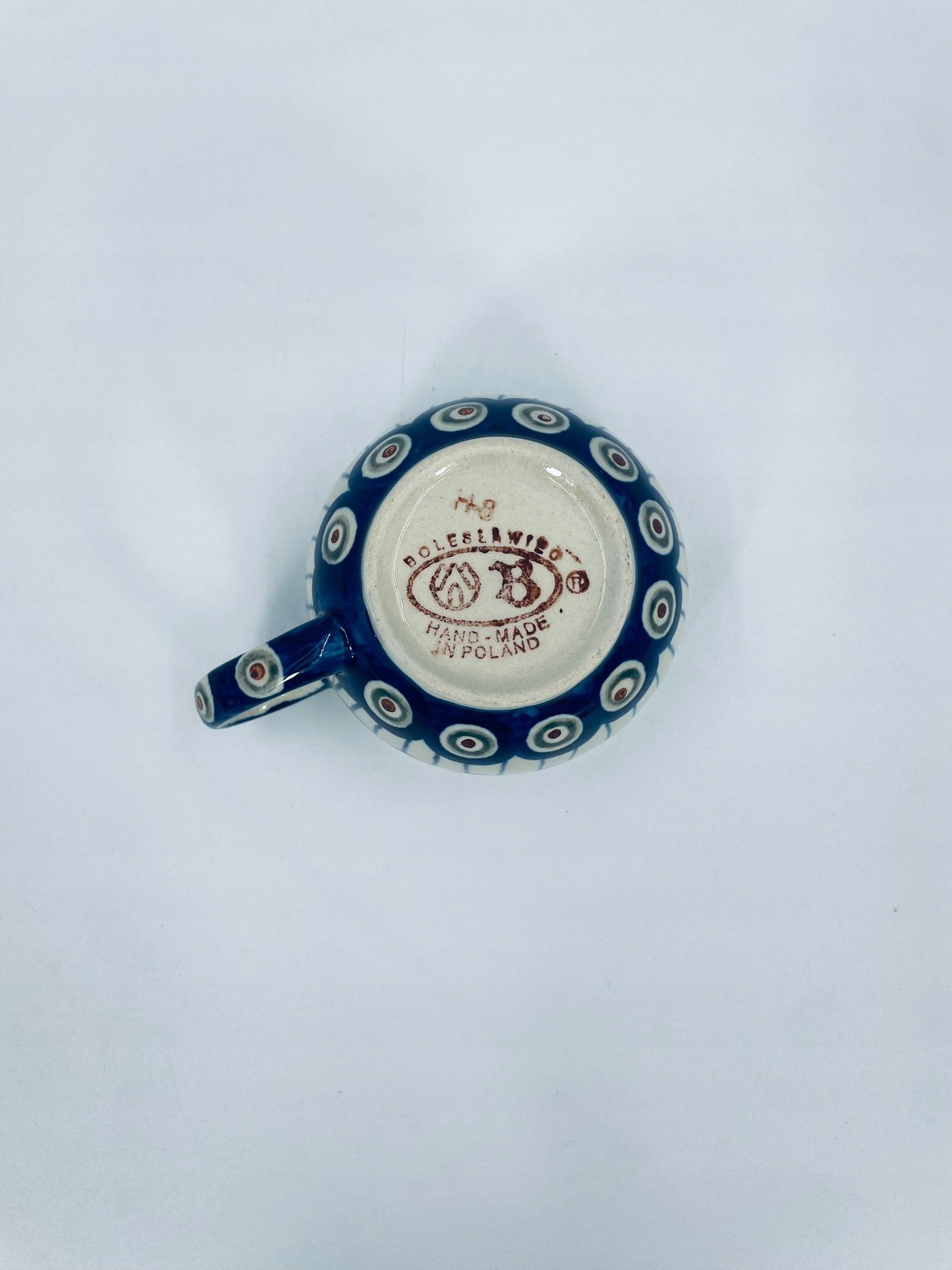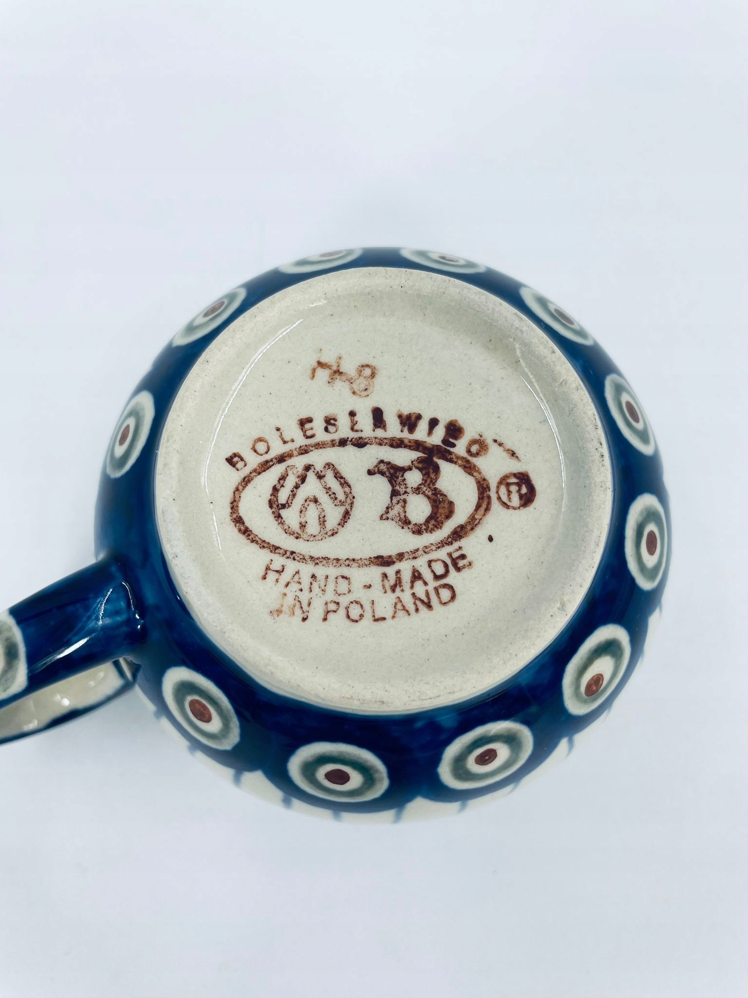 Колекційна чашка польського виробника Bolesławiec, виготовлена з кераміки найвищої якості. Чашка ручної роботи прикрашена традиційним візерунком павиного ока, розписаним вручну. Візерунки на болеславецькій кераміці наносяться методом штампу та пензликом.
