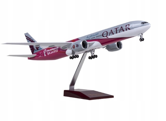 Модель літака Boeing 777 у кольорах Qatar Airways - однієї з найпрестижніших авіакомпаній світу. Це надзвичайно вражаюча копія, створена з увагою до кожної деталі, призначена для вимогливих колекціонерів, любителів авіації та людей, які цінують елегантні прикраси в авіаційному стилі.