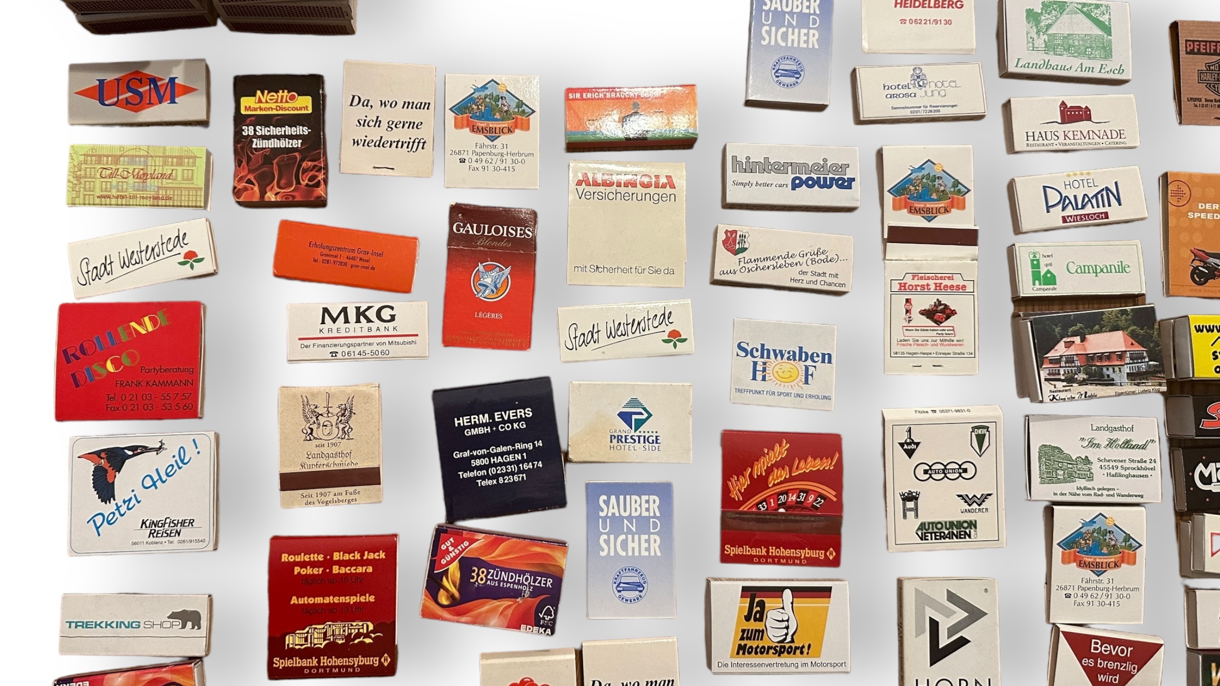 - Набір із 119 упаковок сірників, переважно повних, невикористаних