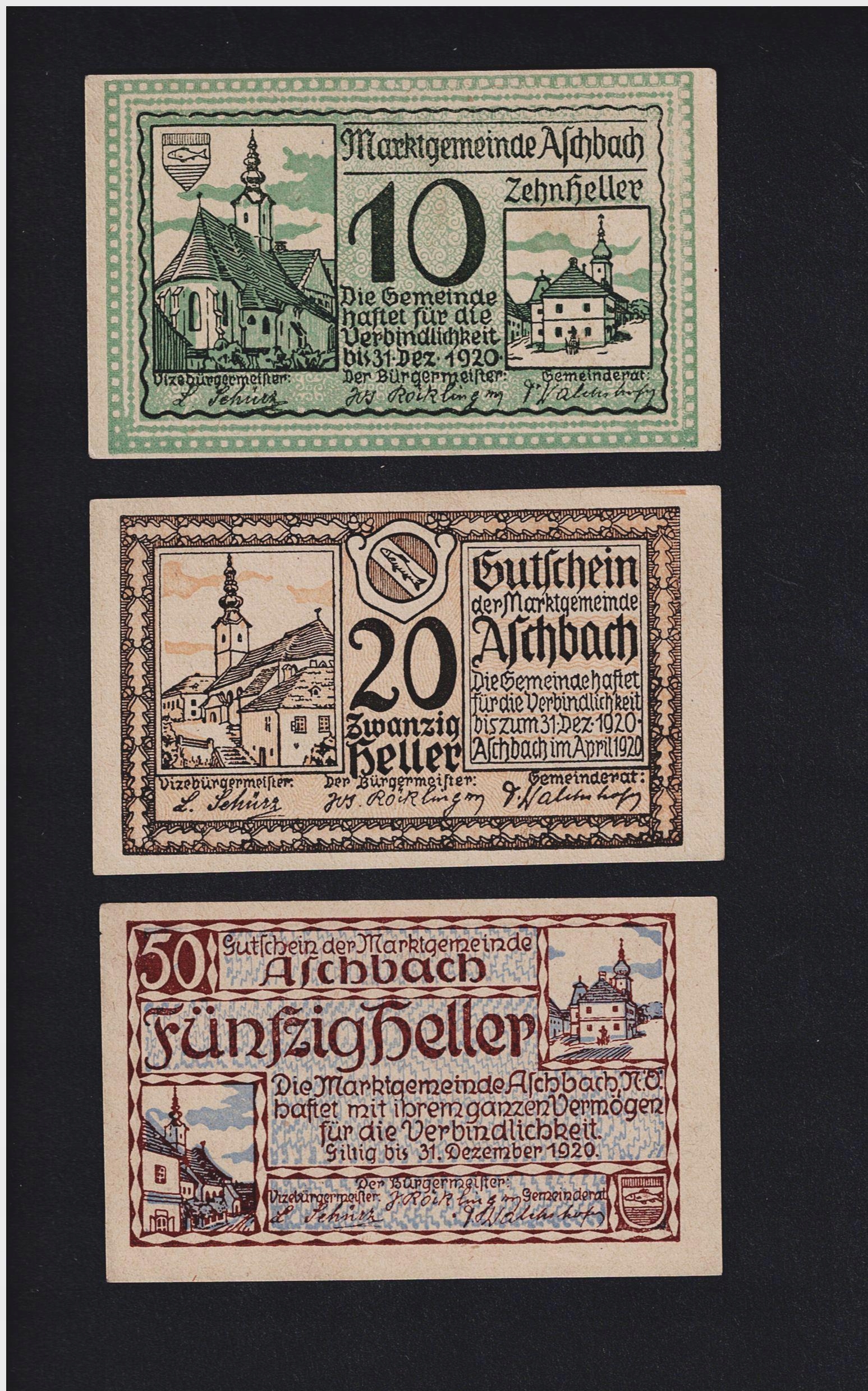 КОЛЕКЦІЯ АВСТРІЯ -- АШБАХ -- 1920 рік, 3 штуки, (N339)