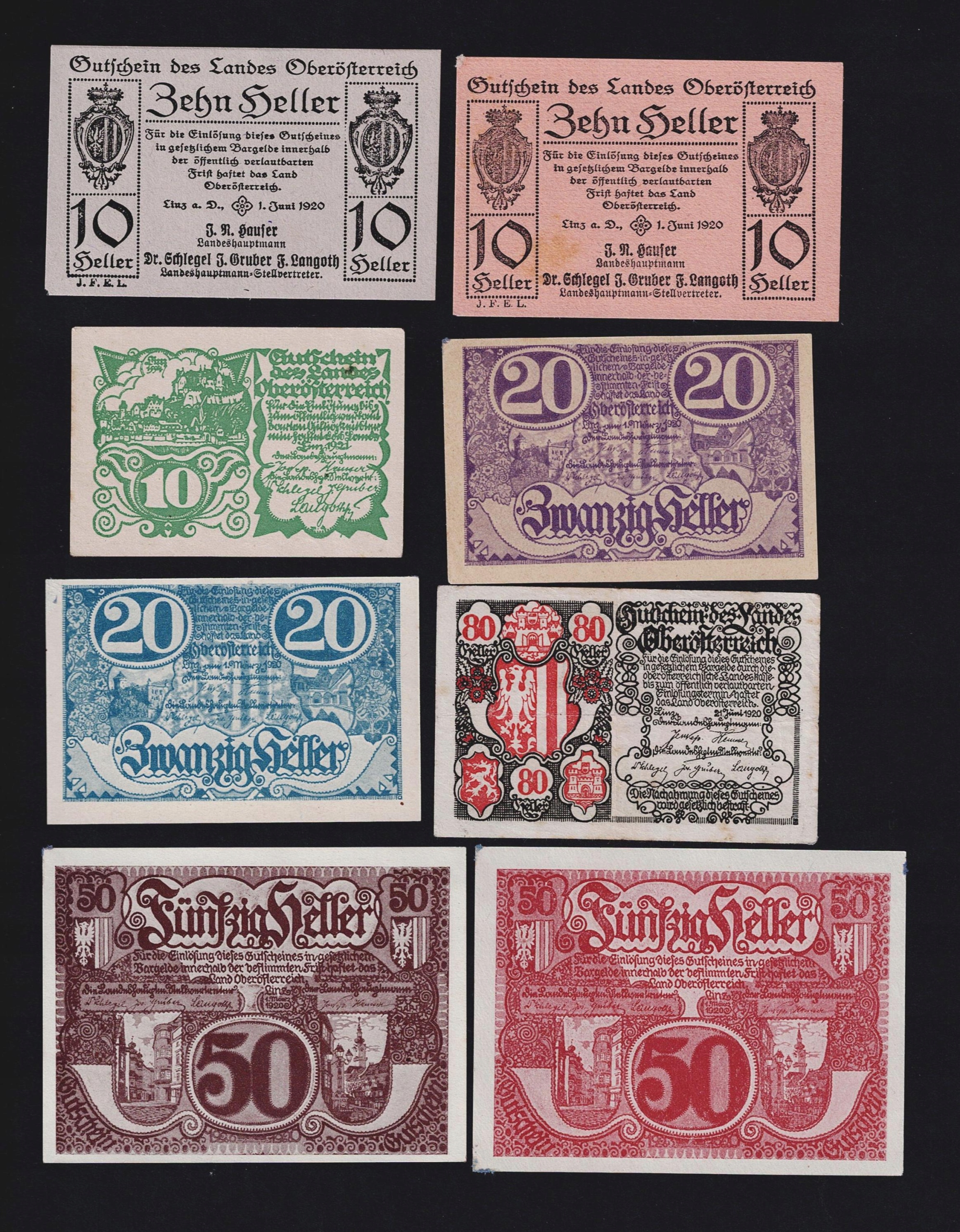 КОЛЕКЦІЯ АВСТРІЇ -- LINZ -- 1920, 8 шт