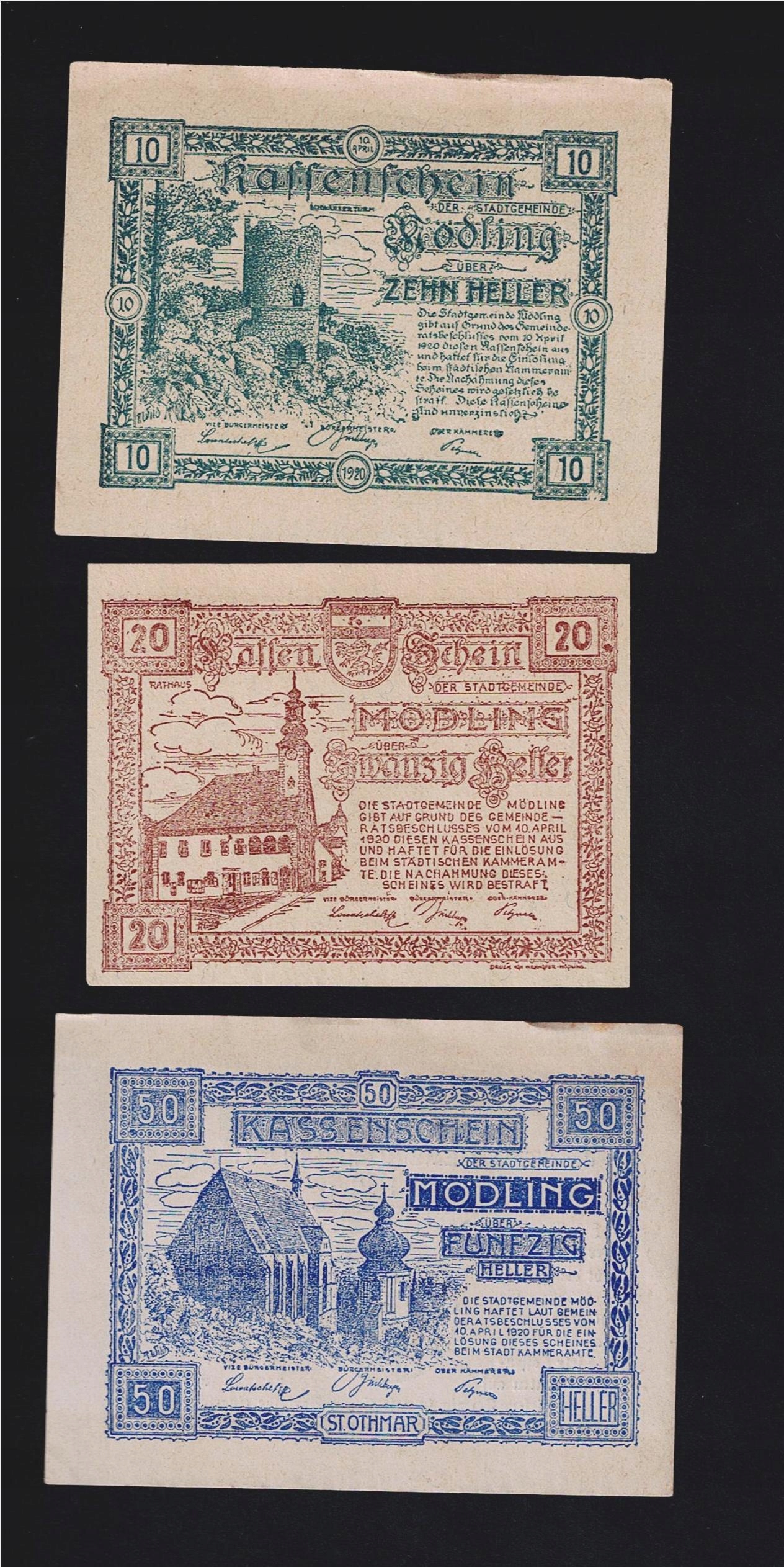 КОЛЕКЦІЯ АВСТРІЯ -- МОДЛІНГ -- 1920 рік, 3 штуки