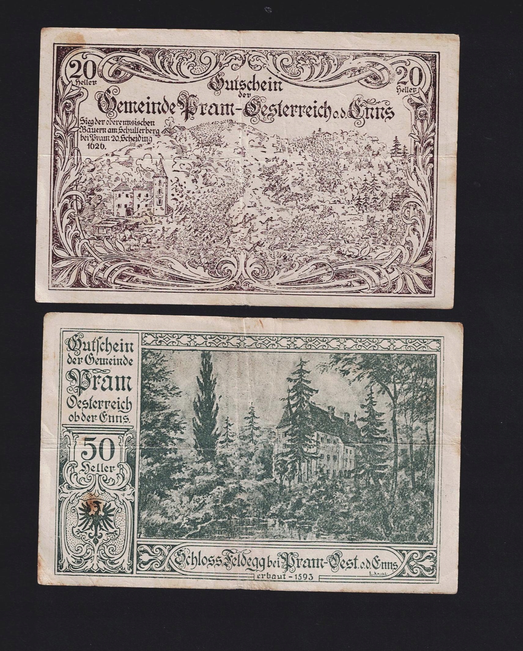 КОЛЕКЦІЯ АВСТРІЯ -- ПРАМ OB DER ENNS -- 1920 рік, 2 штуки