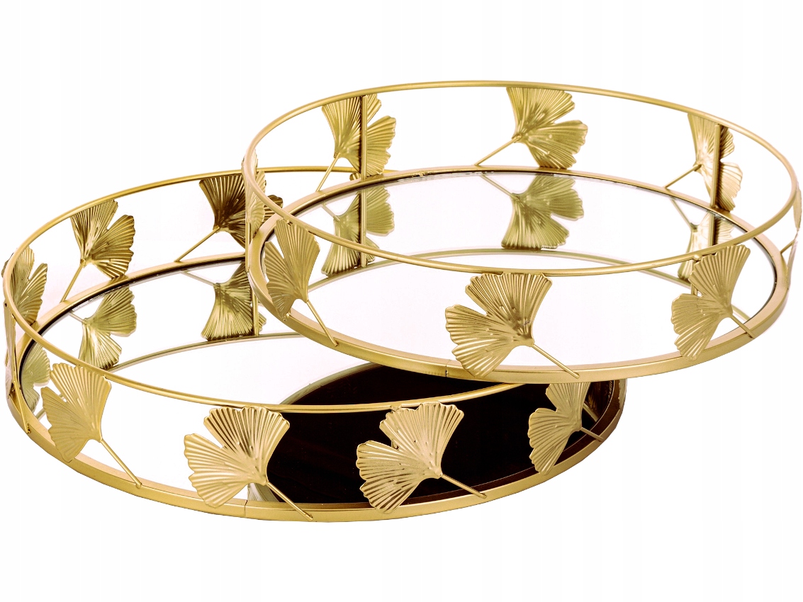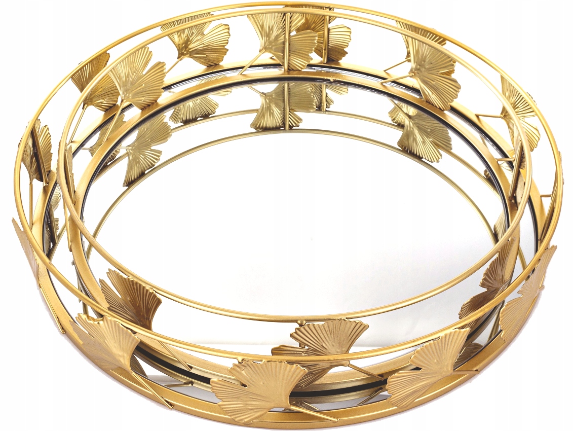 - Круглі дзеркальні підноси, оброблені золотою рамою
