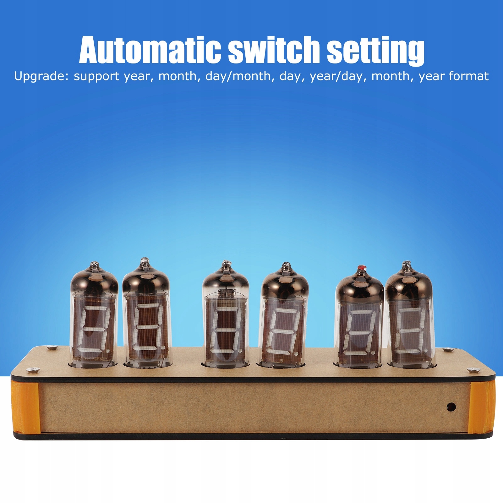 1. Цей флуоресцентний годинник використовує високоточну мікросхему годинника для відображення часу, оновлений і підтримує відображення 12/24 годин. 2. Ламповий годинник використовує високоточний годинниковий чіп для відображення дати (Оновлення: підтримує рік, місяць, день/місяць, день, рік/день, місяць, формат року) 3. Цей цифровий люмінесцентний годинник постачається з автоматичним перемикачем налаштування для вашої зручності. 4. Вінтажний ностальгічний годинник має таймер, який можна вимкнути та налаштувати. 5. Використовуйте режим переривання для читання коду температури, значення температури є точним і не блимає; на відміну від звичайного коду, цей код може обробляти більше вмісту.