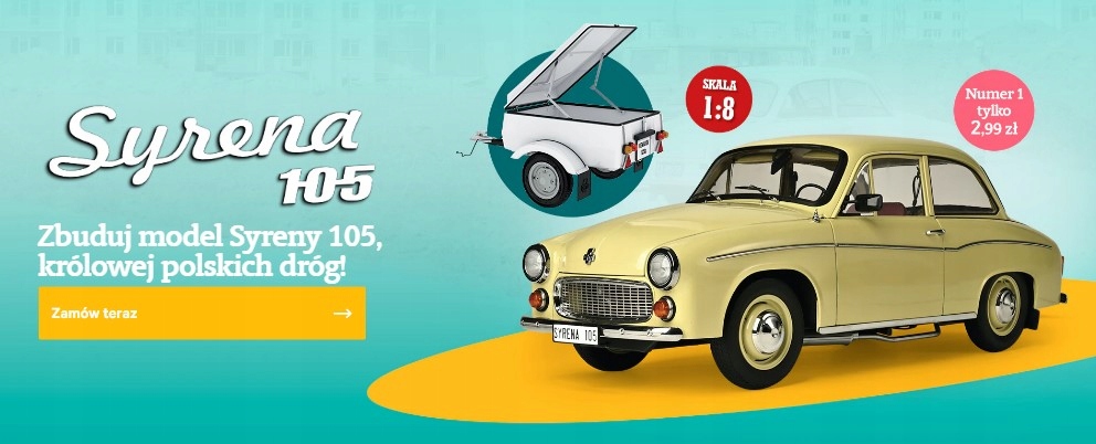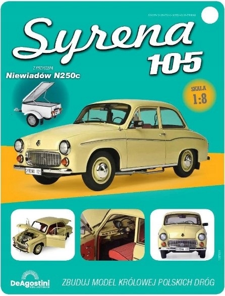 Нова колекція De Agostini неодмінно сподобається всім автолюбителям. Королева польських доріг «Syrena 105» — це справжня насолода для шанувальників автомобільного спорту та історії Польської Народної Республіки. Довгоочікуваний перший післявоєнний легковий автомобіль вітчизняної конструкції створювався в часи дефіциту та адміністративних абсурдів, а кінцевий результат виявився далеким від ідеального. І оскільки у нього було небагато конкурентів у своєму класі та ціновому діапазоні, він виконав свою основну функцію: народний автомобіль. Незважаючи на недоліки і технічні анахронізми, через які Сирена отримала такі прізвиська, як «курколов» або «шкарпетка», господарі ставилися до неї дбайливо і навіть ніжно. Вона взяла тисячі поляків на роботу та на відпочинок. Нині, через 40 років після закінчення виробництва, він користується заслуженим статусом пам’ятника та символу минулої епохи. Завдяки нашій збірці читач зможе побудувати модель, прототипом якої є збережений автомобіль, відсканований і відтворений у масштабі 1:8. Також потрібно буде зібрати популярний на той час причіп Niewiadów N250c. ЧИМ ВИРІЗНЯЄТЬСЯ НАША КОЛЕКЦІЯ? • ВИСОКА ЯКІСТЬ ОБРОБКИ • РУХОВІ КОЛЕСА • ФАРИ, ЩО СВІТЯТЬСЯ • КАПОТ ДВИГУНА, ЩО ВІДКРИВАЄТЬСЯ • ЗВУК ДВИГУНА • РЕАЛІСТИЧНІ ДЕТАЛІ