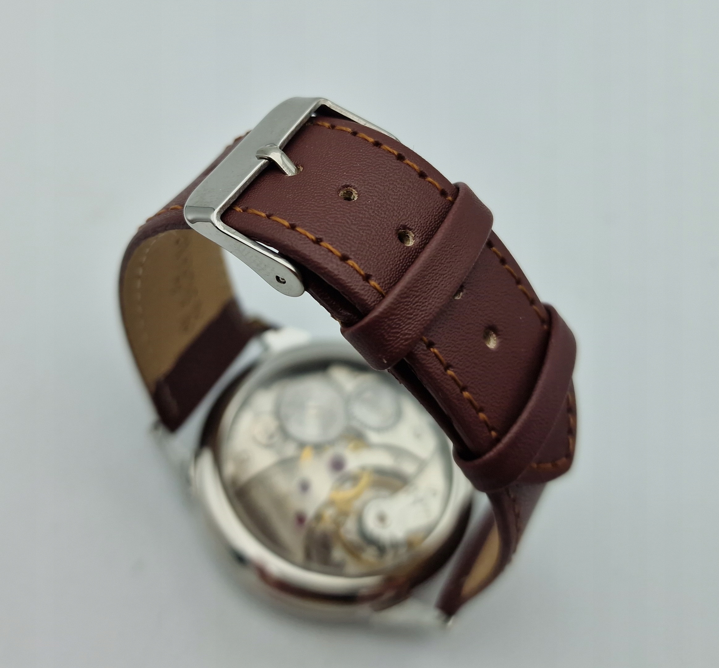- Діаметр годинника 4,3 см без заводної головки. Висота з вушками 5,1 см. У комплект входить коричневий ремінець з натуральної шкіри зі сталевою застібкою.