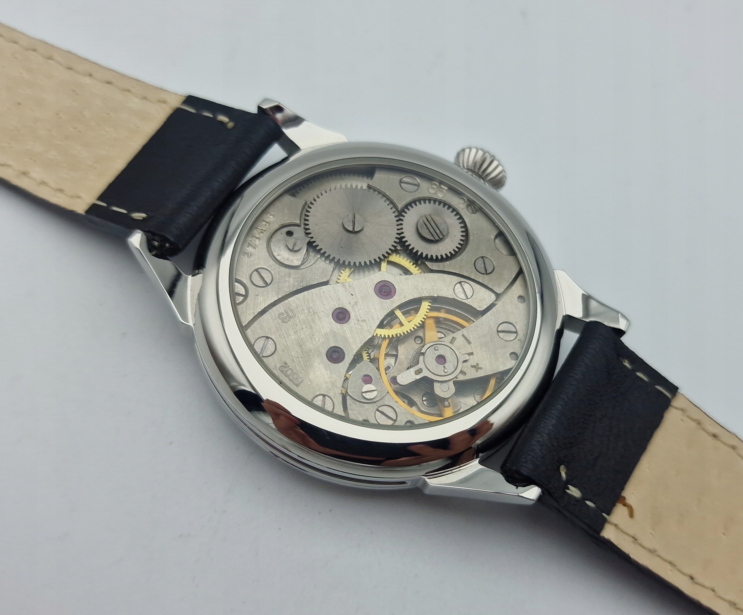 - Механізм годинника з 18 дорогоцінними каменями, з анкерним спуском, з підписами: «3502, SU». Механізм працює добре й точно після перевірки й обслуговування годинникарем.