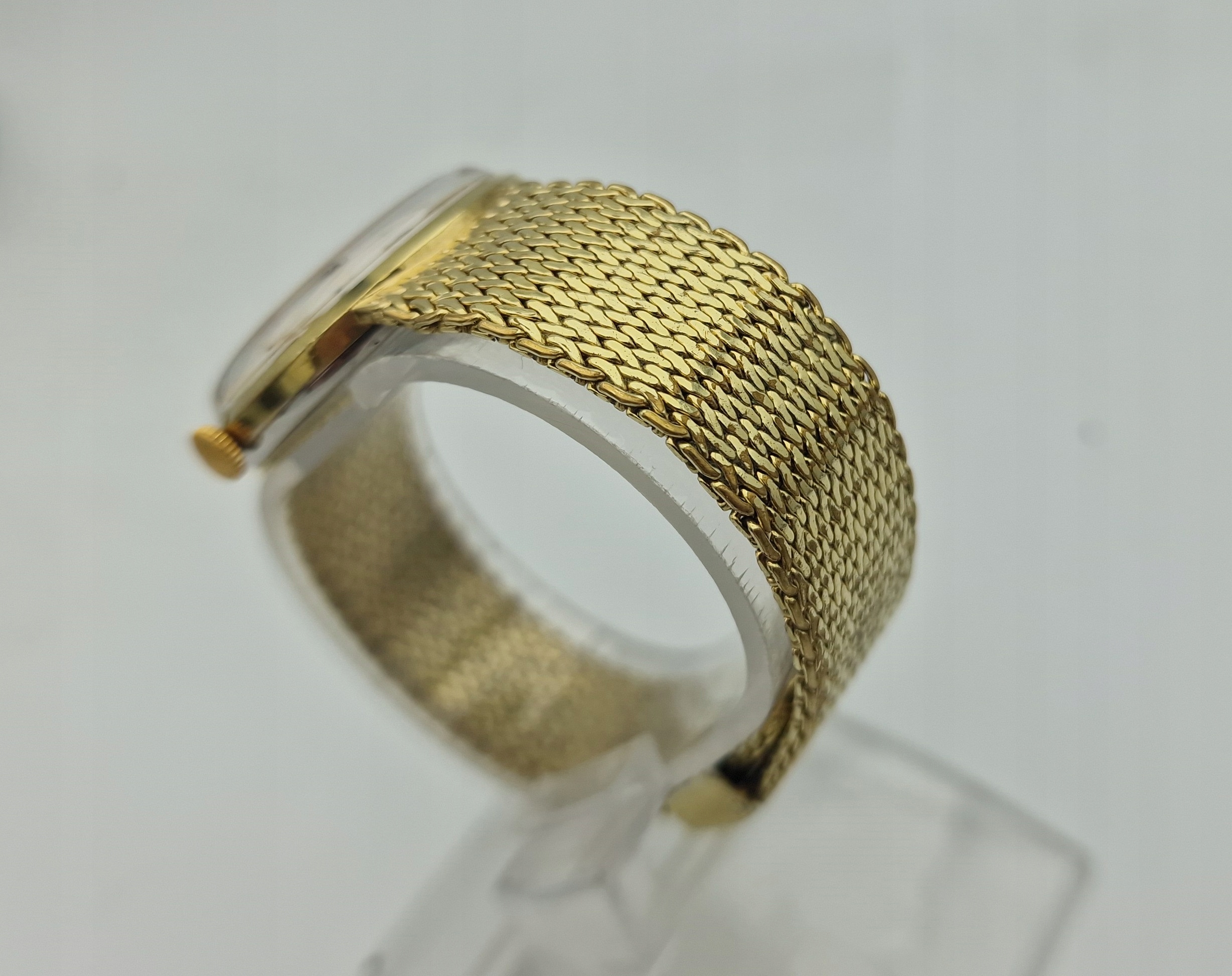 - Діаметр годинника 3,4 см без заводної головки та вушок, є ремінець. Висота з ручками 4,6 см. У комплект входить оригінальний позолочений браслет в практично ідеальному стані. Повністю регулюється.