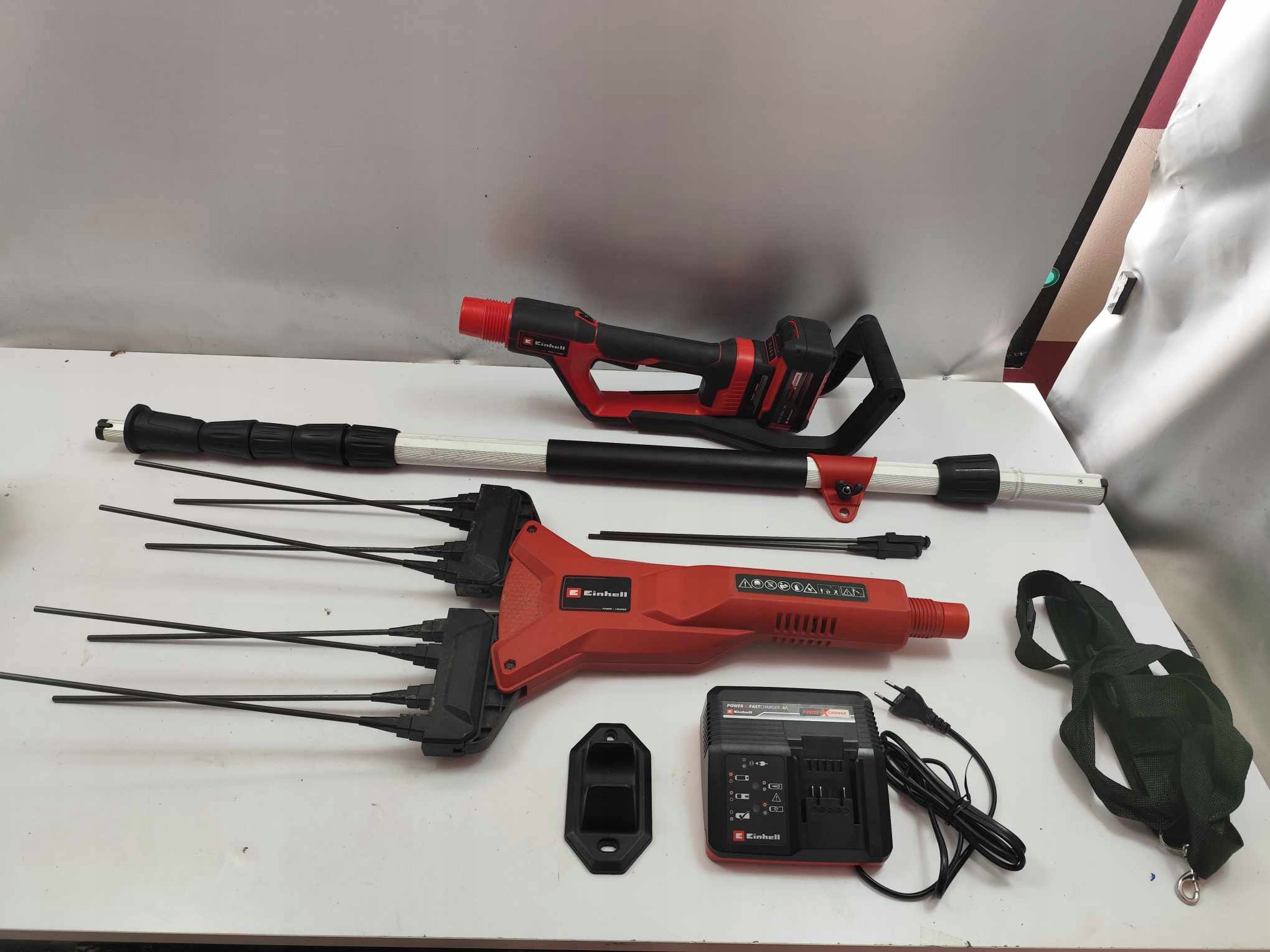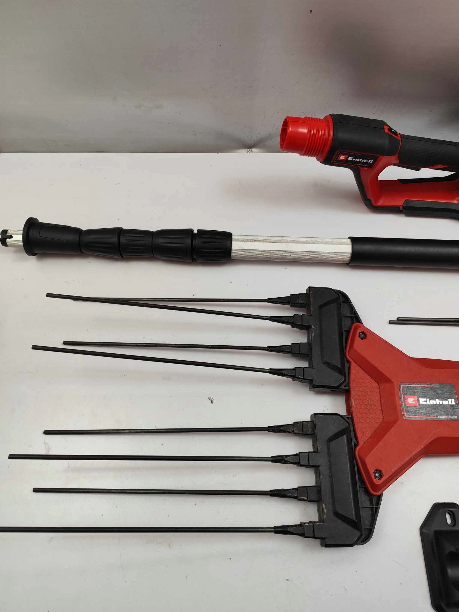 вживаний продукт, ефективний, завершений. > Завдяки Einhell GE-FS 18/53 Li-Solo Olive Olive and Fruit Juiser, час збору врожаю стає дитячою грою. Незалежно від того, це плід чи оливкове дерево - завдяки високій потужності акумулятора, легкий, зручний пристрій трясе кожен фрукт, виготовлений з гілок. Бездротовий плід та оливкова соковижималка належать до сімейства Power X-Change, в якій ви можете гнучко поєднувати всі акумулятори, пристрої та зарядні пристрої. Гребінець пробивається через гілки постійним бічним рухом і робочою шириною від 28 до 53 см. 8 міцних зубів вуглецевого волокна 31 см Швидкість цього руху може бути відрегульована ручкою. Окремі вугільні зуби можна легко замінити. Додаткова задня ручка також полегшує досягнення високих гілок. Функція безперервної роботи та зручної роботи завдяки спеціальним м'яким зчепним поверхням забезпечують полегшення під час роботи. Регульований ремінь носіння дозволяє розподілити оптимальну вагу. Включений. B. Доступний як набір запуску.