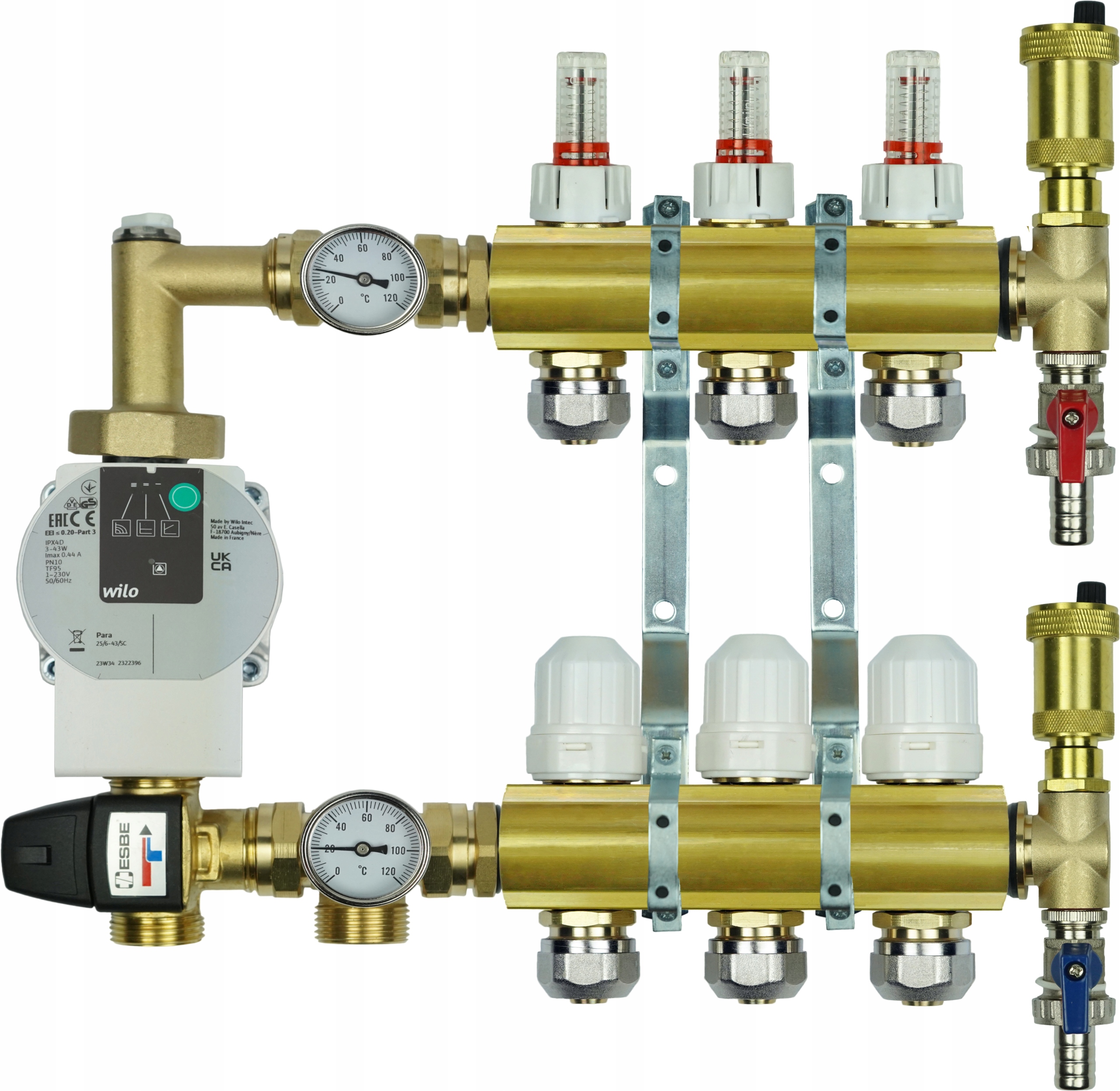 - термостатичний клапан з ручкою M30 x 1,5 з ніпелем і з’єднувачами для труби PEX ¾" x 16 (3 шт.);
