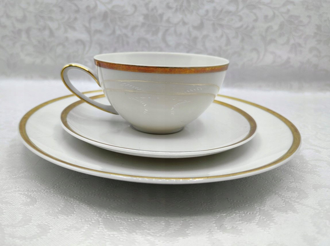 старовинний, Матеріал: порцеляновий, Висота чашки 5 см, діаметр більшої пластини 19,5 см, діаметра 2 -х пластини, g Дуже добре, не пошкодження/порцеляновий чіпінг, приємна позолота! набір колекторів та утиліти. Рекомендую!