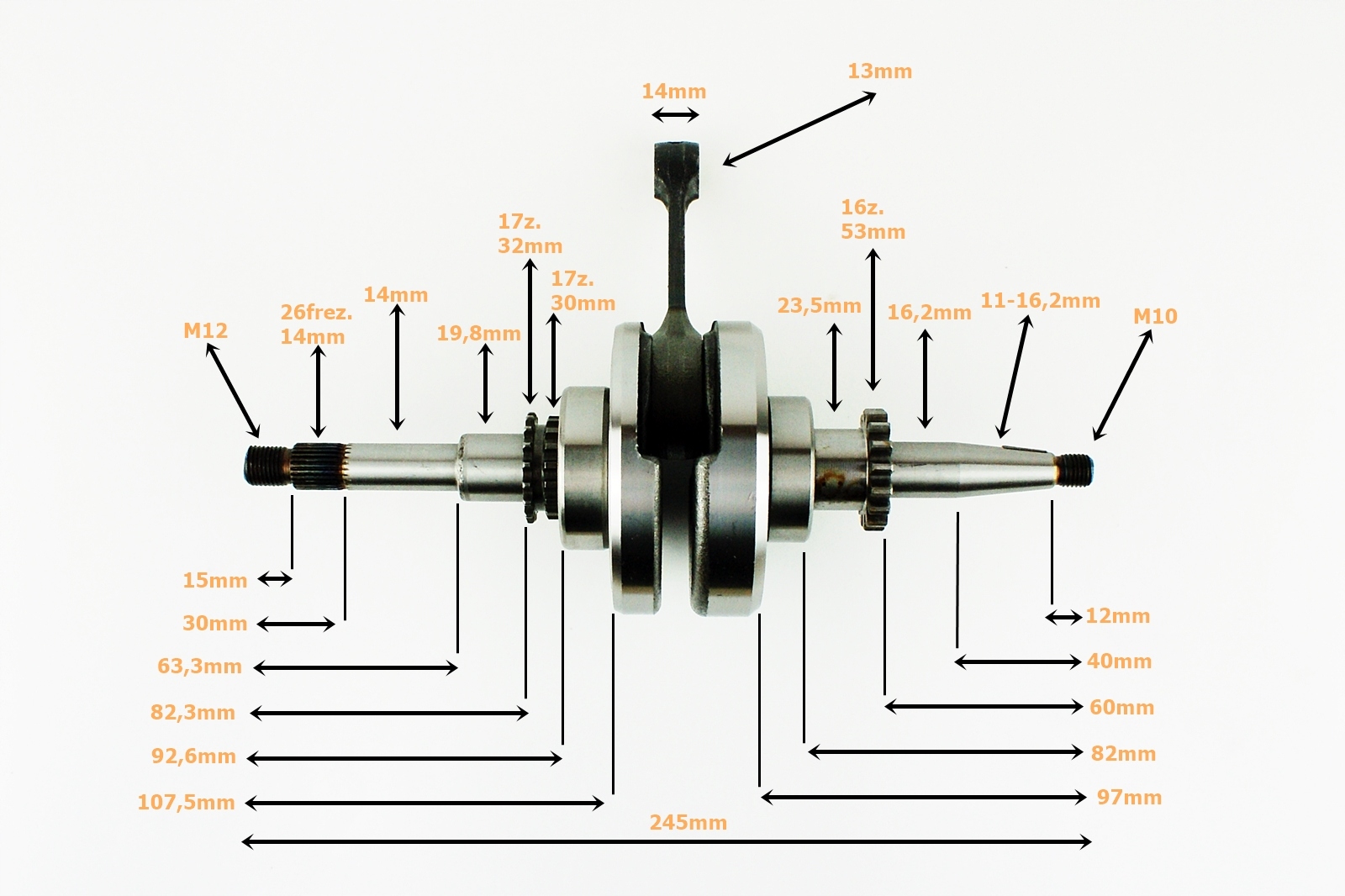 Колінчастий вал з матеріалів найвищої якості. Якість виготовлення гарантує тривале і безвідмовне використання. Вал є ідеальною заміною оригіналу, він відбалансований і готовий до установки. В комплекті з підшипниками.