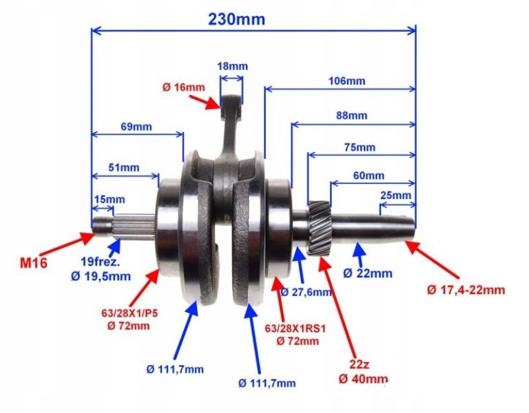 - ВІДСТАНЬ ГРМ ДО КІНЦЯ ВАЛА: 60 мм