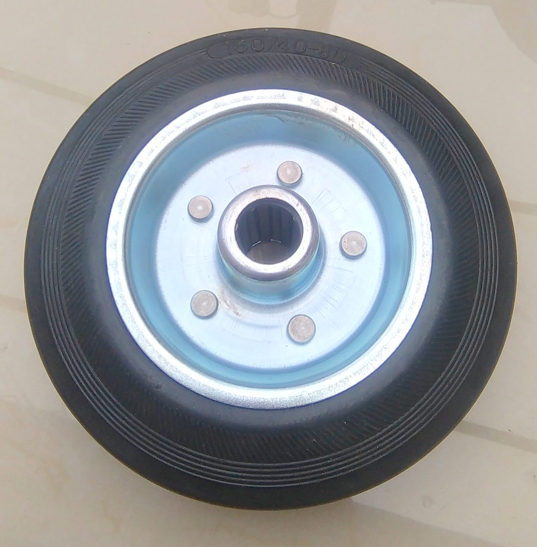 Ці колеса мають шини з суцільної чорної гуми, втулку виготовлено з ободів із пресованого сталевого листа. Всі металеві елементи оцинковані з хромоцинковим покриттям. Використання довготривалого мастила в осі коліс дозволяє працювати без обслуговування. Стандартно колеса оснащені голчастими підшипниками.