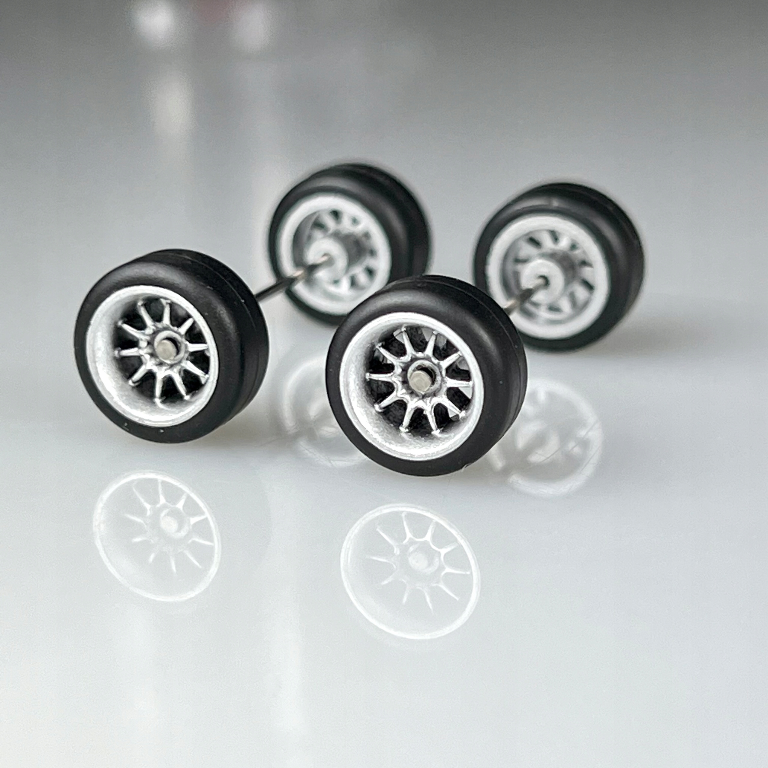 Колеса 1:64 сріблясті диски 1/64, гумові шини, комплект коліс hot wheels