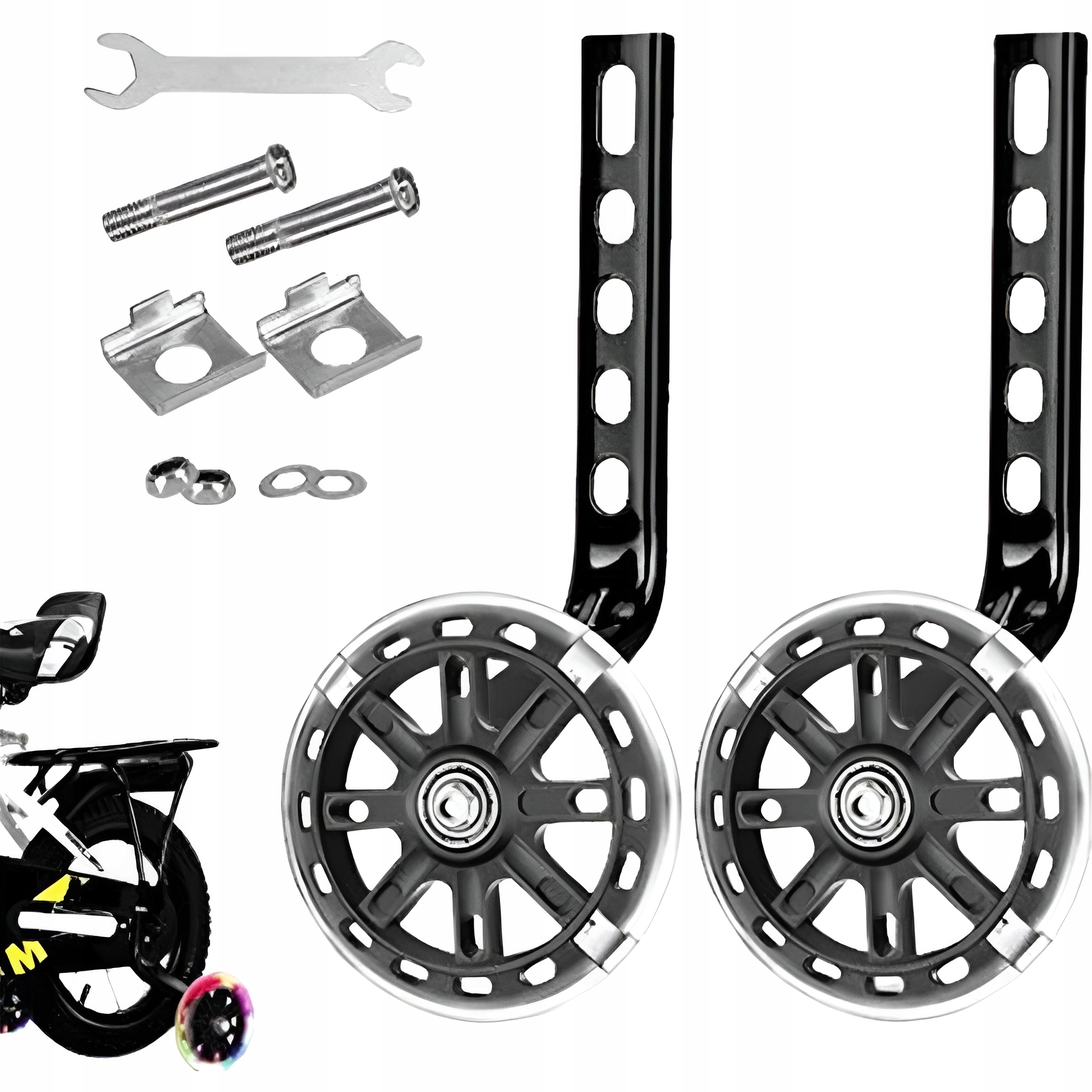 КОЛЕСА БІЧНОЇ ПІДПРИТИ ВЕЛОСИПЕДА 12-20 ДЮЙМОВ, КОЛЬОРОВІ, УНІВЕРСАЛЬНІ, СВІТЯТЬСЯ СВІТОДІОДОМ