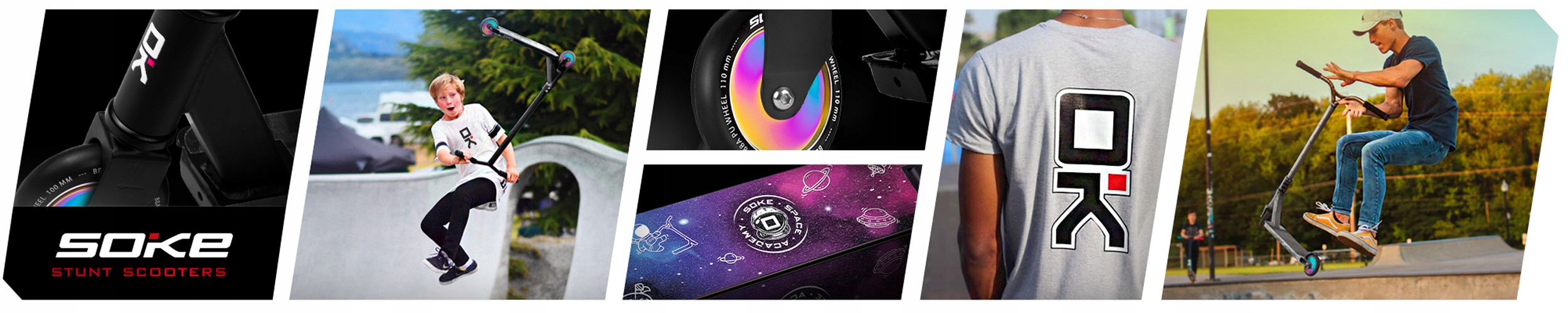 Бренд SOKE був створений, щоб супроводжувати молодих скутеристів, від вивчення перших трюків до найдосконаліших еволюцій. Так народжуються чемпіони, так народжуються ЛЕГЕНДИ спорту.
