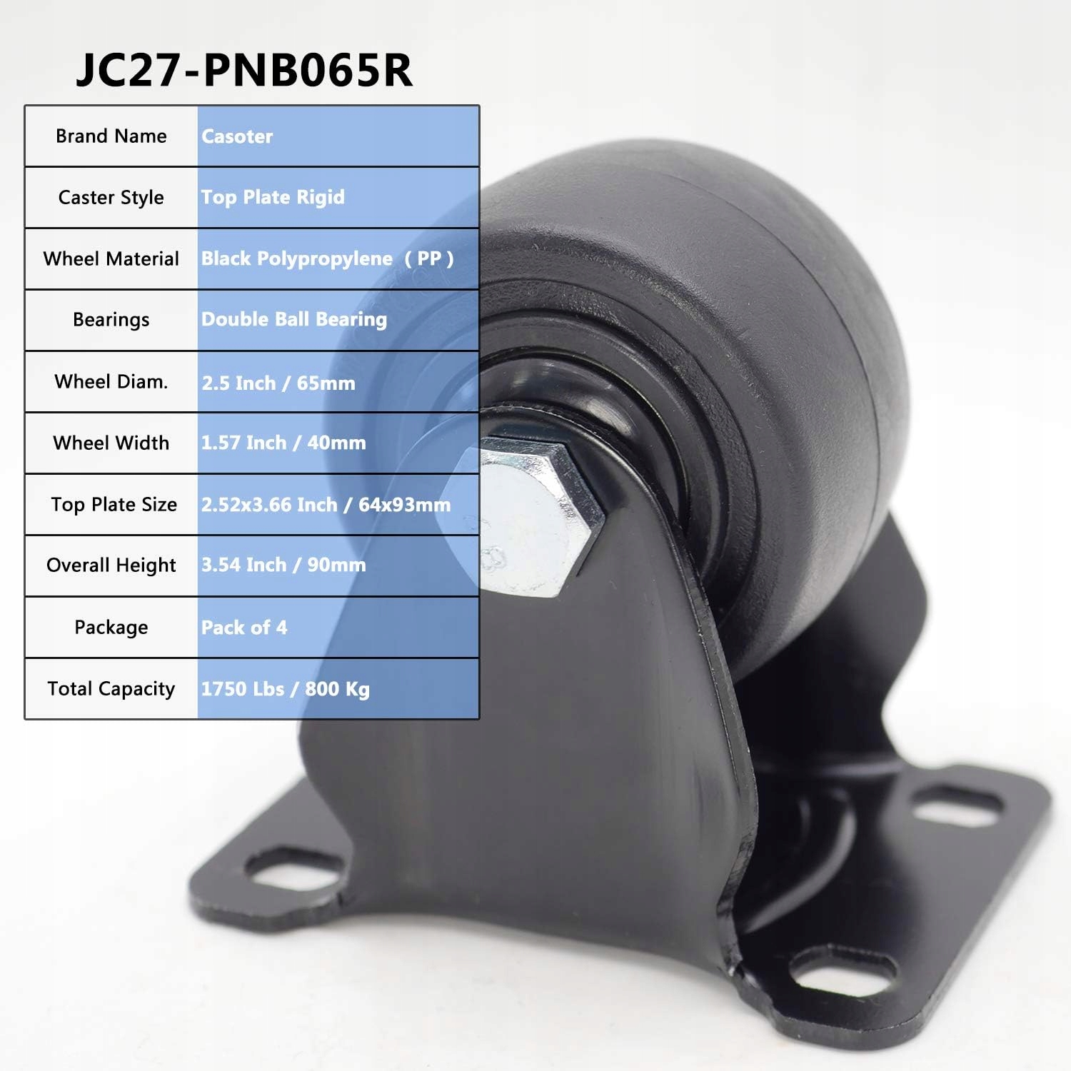 ✔️Casoter 2,5 дюйма ширина колеса Верхня пластина Жорстке чорне поліпропіленове колесо, низька центральна конструкція Без гальм. Безшумні промислові поліпропіленові колеса для важких навантажень, 800 кг Загальна вантажопідйомність Упаковка по 4 шт.