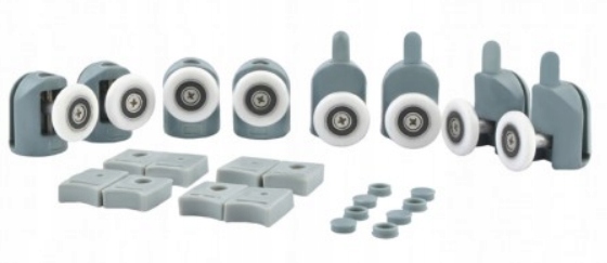 - Універсальність– ролики виготовлені з пластику, нейлону та корозійностійкої сталі. Вони підходять до всіх душових кабін, які використовують цей тип кулькових опор. Ролики та колеса адаптуються до форми направляючої.