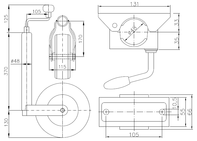 КОЛЕСНО ОПОРИ З РУЧКАМ 200 кг НАКАТАНО
