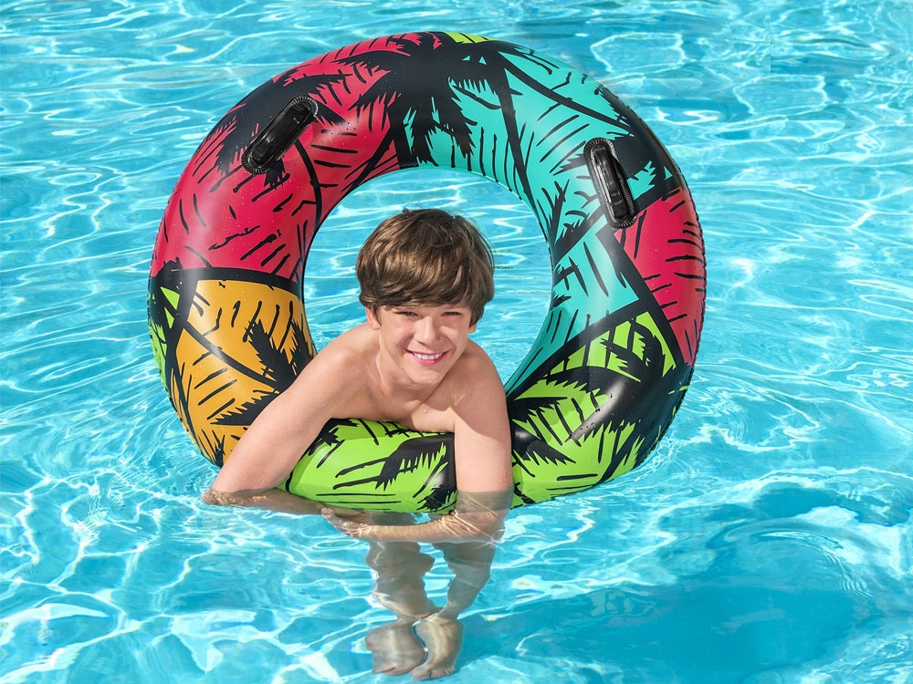Надувне кільце для плавання Bestway 91 см - це пропозиція від Bestway для майбутнього літа, щоб залишатися на поверхні води цього літнього сезону. Гурток розрахований на дітей від 10 років. Красивий дизайн і яскраві кольори привернуть увагу кожного любителя водних ігор. Кермо оснащене двома міцними ручками для полегшення входу та виходу людей, які невпевнено почуваються у воді. Каблучка виготовлена з міцного ПВХ матеріалу, стійкого до пошкоджень і сонячних променів.