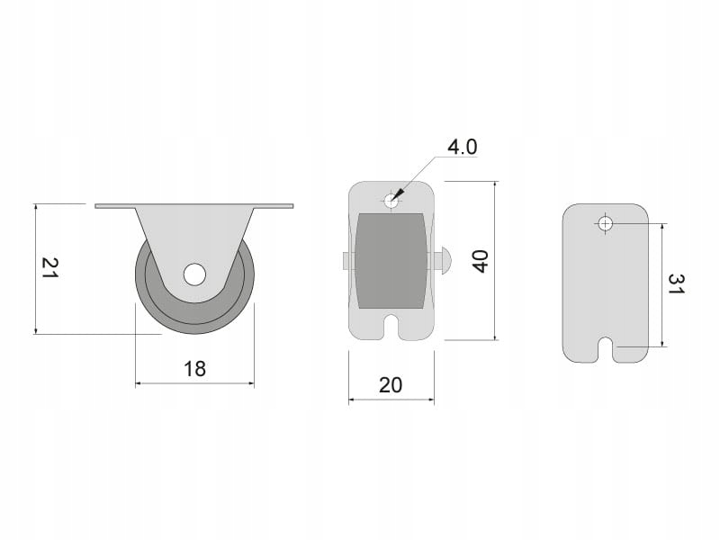 КОЛЕСО МЕБЛЕВЕ РОЛИК ПЛАСТИКОВИЙ ЖОРСТКИЙ FI-22мм ПРЯМИЙ