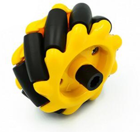 Ліве всенаправлене колесо Mecanum діаметром 48 мм, яке складається з 9 роликів, розміщених по колу колеса. Така конструкція дозволяє роботу рухатися не тільки вперед і назад, але і в сторони. Щоб використовувати кінематику коліс, робот повинен бути оснащений 4 колесами Mecanum (два правих і два лівих), які встановлені по діагоналі так, щоб ролики утворювали знак «X». Маточина колеса підходить для двигунів з валом діаметром 5,4 мм, напр. популярні двигуни ТТ. Використання коліс Mecanum у мобільному роботі значно збільшує його можливості пересування та є цікавою альтернативою стандартним системам приводу.