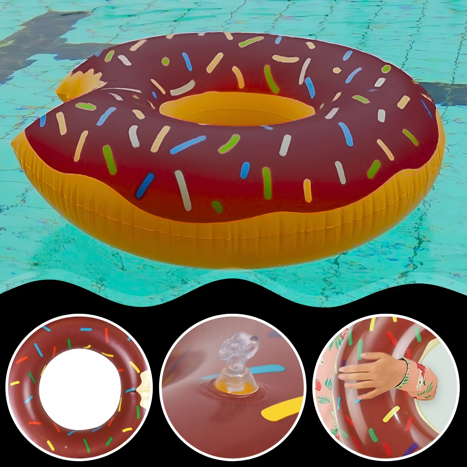 ✅ НАСИЧЕНИЙ КОЛІР ТА ФАНТАСТИЧНА ГРАФІКА: пляжне колесо має насичений колір і привабливу графіку пончиків, яка привертає увагу та додає чарівність літніх канікул. Це ідеальний спосіб виділитися та насолоджуватися стильним виглядом на пляжі.