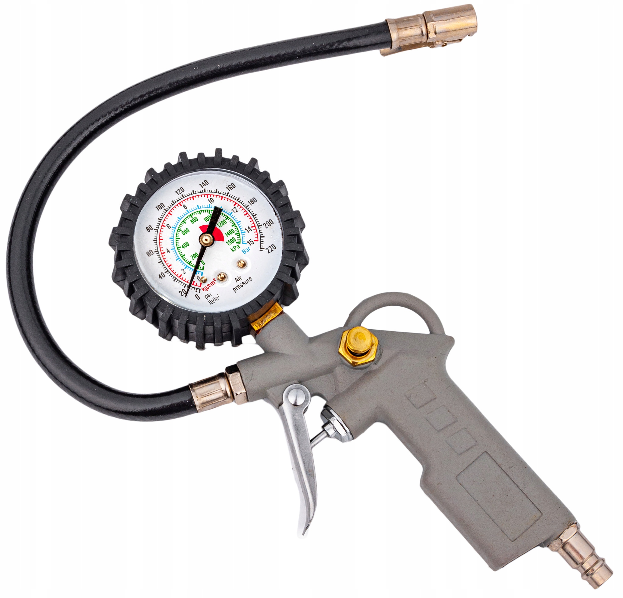 - Пневматичний пістолет для накачування шин із манометром є необхідним інструментом у кожному гаражі.