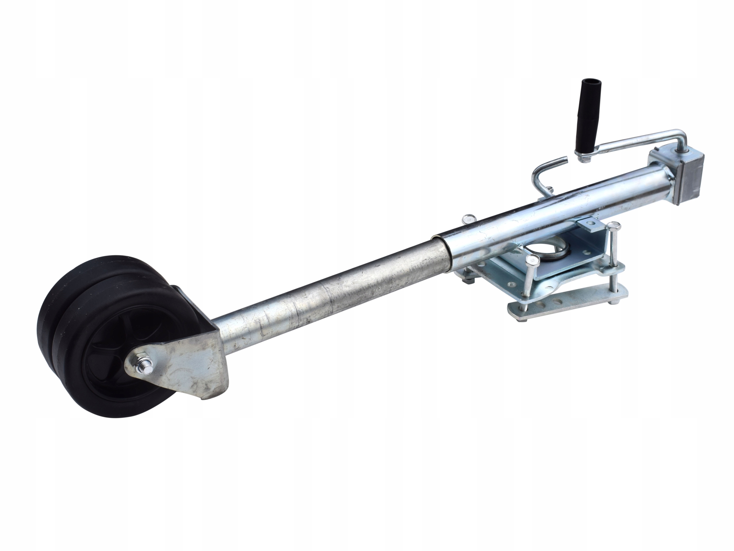 Колесо підтримки з обертовим затискачем та подвійним колесом підтримки! Встановити видимий на фотографії поруч У причепах, евакуатори, інспекційні причепи, коні для транспортування або у всіх інших причепах з великим навантаженням