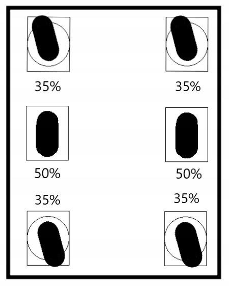 Колесо має завжди торкатися землі. На практиці це рідко трапляється через пороги або нерівності землі. У результаті загальне навантаження часто потрапляє на три колеса, а навантаження на колесо збільшується. Тому загальне навантаження має бути розділене на три колеса замість чотирьох для досягнення безпечної вантажопідйомності.