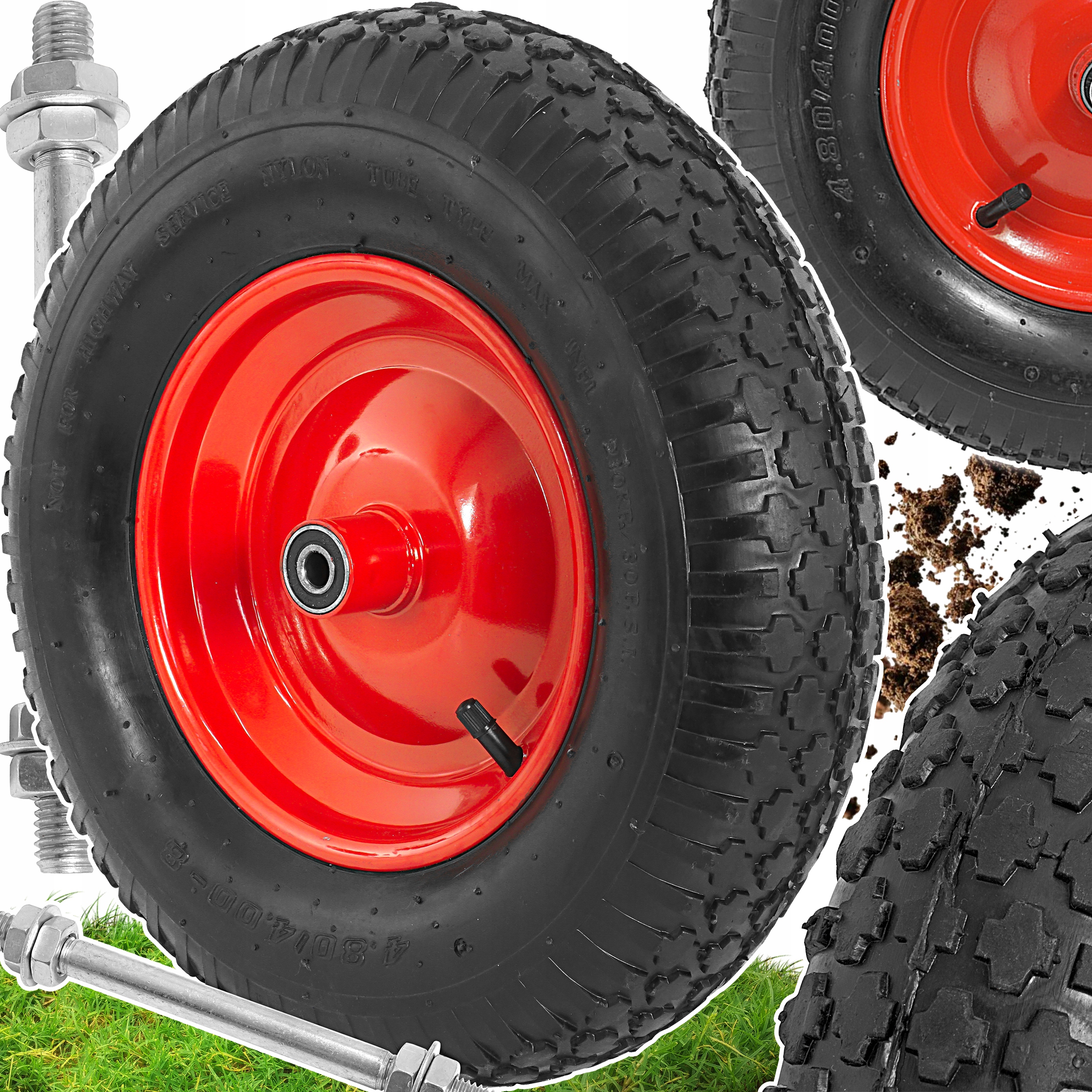 КОЛЕСО ТАЧКИ ТАЧОК КОЛЯСКИ 400-8 6Р НАКАЧАНА З ВІССЮ ШИНА МІЦНА ДУХОВКОЮ
