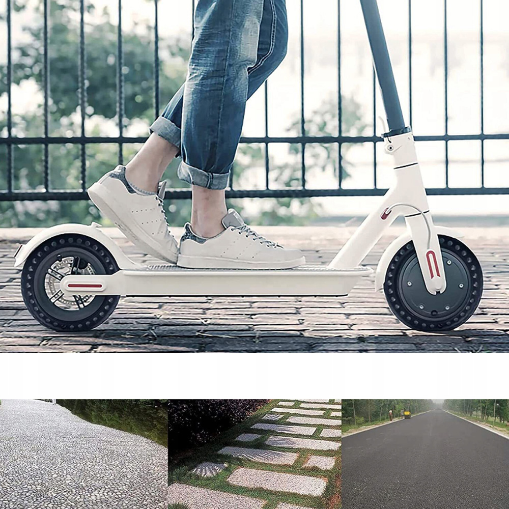 ✅Чудова стійкість до ударів - Особлива конструкція шини скутера у формі стільника робить її оснащеною чудовими амортизаторами, стійкістю до вибуху та тиску. Він ідеально підходить для сніжних і дощових днів, забезпечуючи максимальну безпеку.