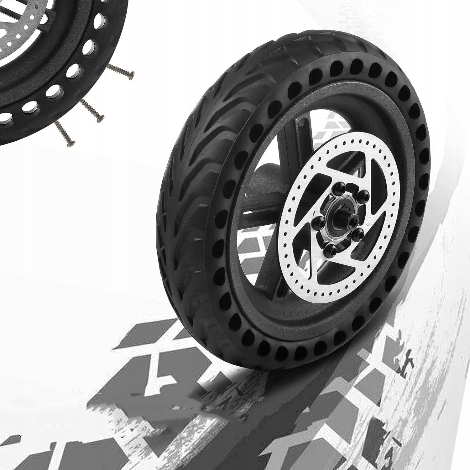 Продукт містить 8,5-дюймові повні гумові шини та вбудовані оболонки з алюмінієвого сплаву, придатні для електричного скутера Xiaomi M365 , найкращим рішенням для прохоплених ширів та заміни шини. Перед покупкою перевірте номер моделі електричного скутера. Повна шина для заднього скутера. Заміна вживаних шин скутера.