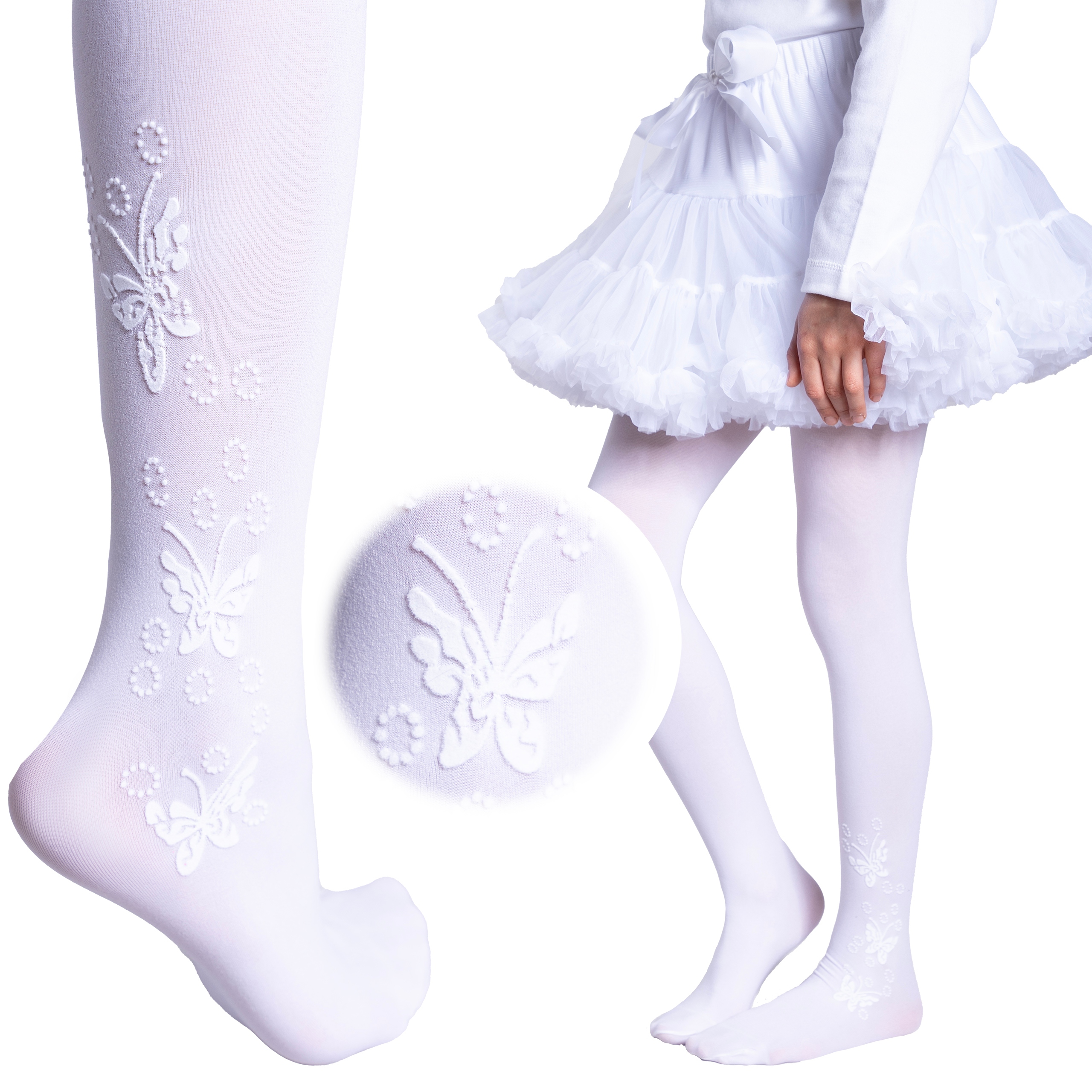 Колготки для причастя з ніжними візерунками є ідеальним доповненням до стилю для причастя.